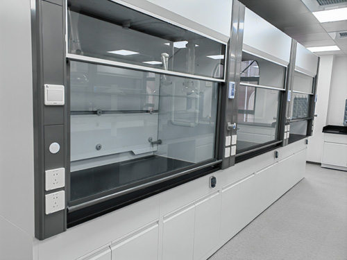 2)燈具照明:通過弧形能效孔燈,隱藏桌面于頂板上,不與通風系統柜里工作廢氣間接接處,易更新,光亮度充分具備工作標準要求。